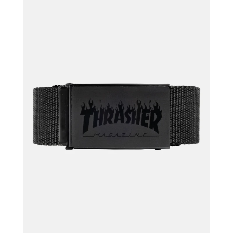 The Thrasher Flame Logo Web Belt offers a sophisticated take on a legendary skate graphic. Because this model features a black-on-black flame logo print, it provides a subtle aesthetic that complements any outfit. Furthermore, the military-style flip-top buckle allows for a completely customizable fit. Ultimately, this belt ensures your pants stay secure whether you are in the middle of a heavy skate session or just navigating the city.