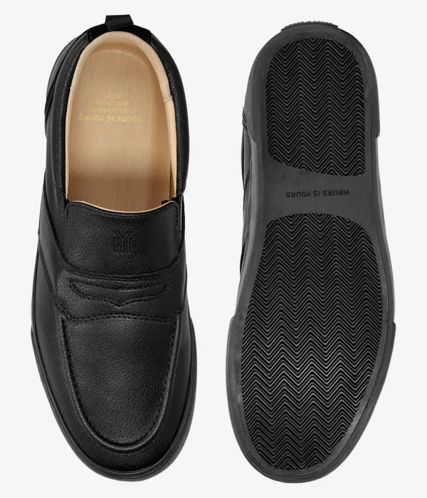 The Cohiba SL30 Skate Loafer offers a unique approach to skate footwear by blending traditional loafer styling with modern skate performance. The sleek black leather upper gives the shoe a clean and refined look that stands apart from typical skate shoes.